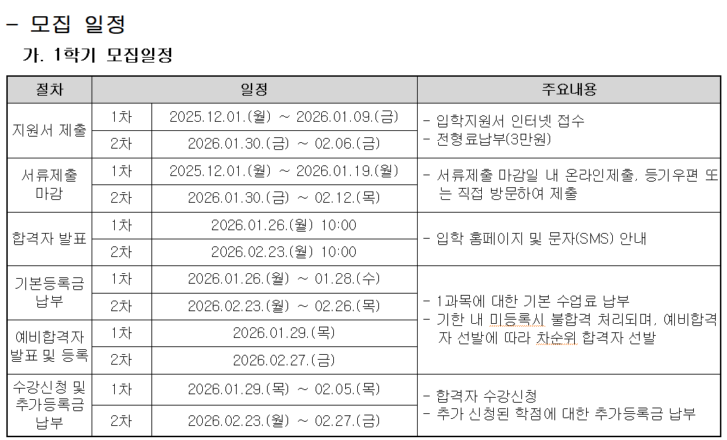 본교의 2026-1학기 시간제등록생 모집을 안내드립니다.